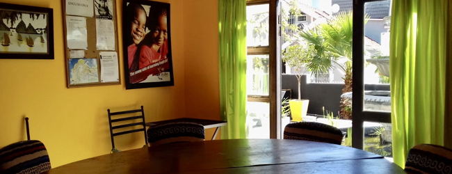 Notre école de langue réside dans une belle villa située dans le jeune quartier de Green Point au Cap. Dans la cour intérieure se trouve la piscine de l'école.